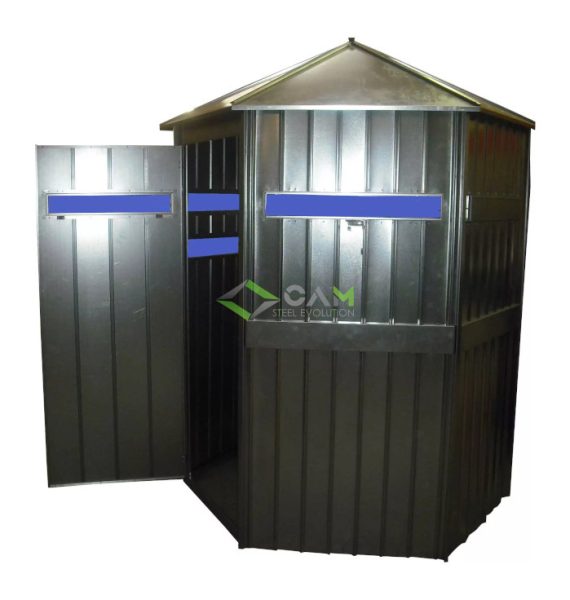 La versione esagonale alta cm 250 è composta da 6 pannelli (cm 90 x h 220 cm cad ) in lamiera zincata e verniciata a polvere. Dotata di 5 pannelli a 2 visiere (inferiore fissa , superiore regolabile in altezza) entrambe regolabili in larghezza. Porta con 2 visiere fisse e catenaccio di chiusura esterno/interno. Completo di tetto , angolari per la base , aste e viteria. Ingombro interno da angolo a angolo cm 180. Il peso della struttura è di Kg 130.