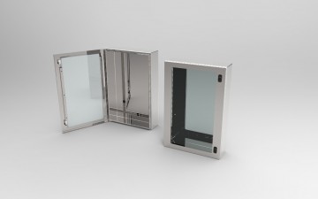 Porta reversibile con due chiusure (una chiusura di ad H400), in acciaio INOX con guarnizioni di colata continua. L’apertura della porta è protetta da una lastra di plexiglas
