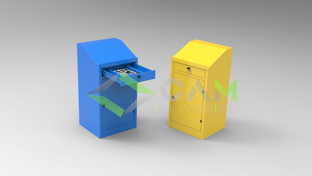 Realizzata in lamiera verniciata a polvere , questa consolle possiede un cassetto estraibile in cui è stato ricavato un vano dove riporre un tablet di dimensione 400×250.