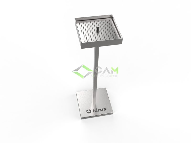 Questo posacenere da esterno è semplice e compatto. Il suo design essenziale lo rende un articolo funzionale ed economico al tempo stesso, capace di adattarsi a qualsiasi ambiente venga inserito, interno ed esterno. Può essere munito di griglia per facilitare la pulizia della vaschetta. Al contrario di altri prodotti da noi offerti, la struttura di quest’ultimo è a gamba singola.