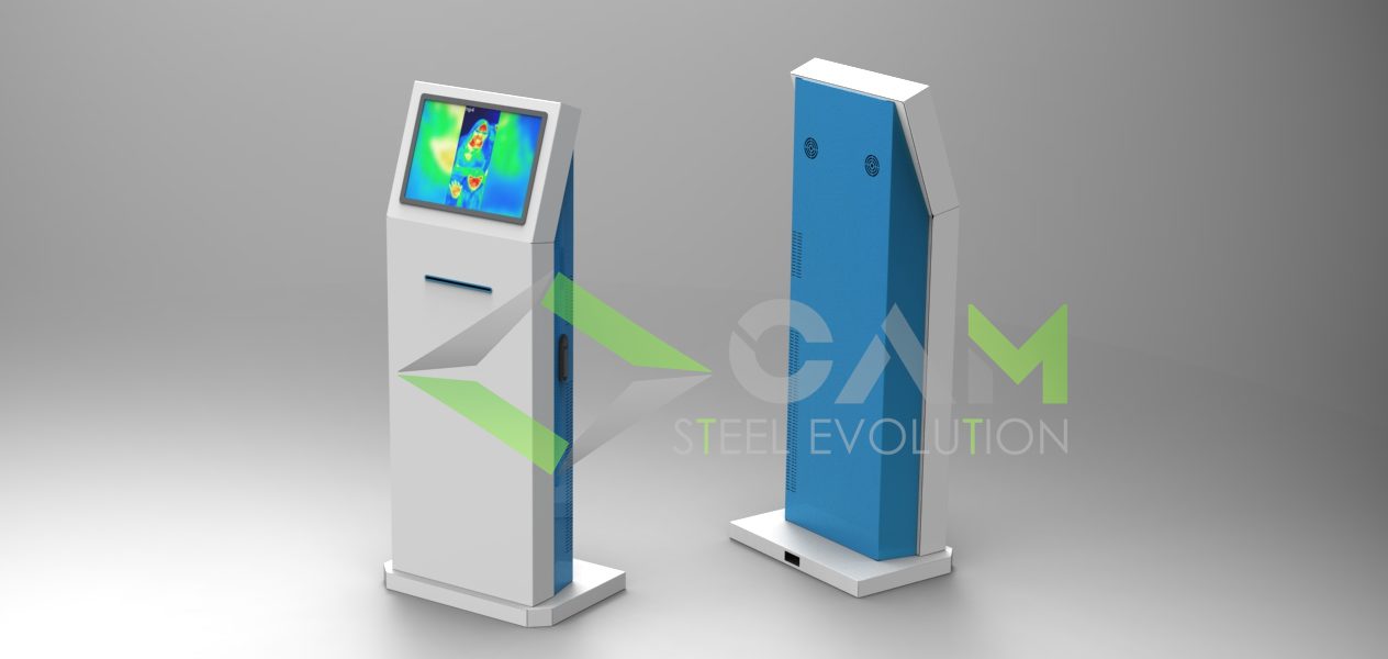 Il totem modello “FUTURE” è una comoda ed elegante struttura atta all’installazione di sensori o telecamere per la rilevazione della temperatura corporea.